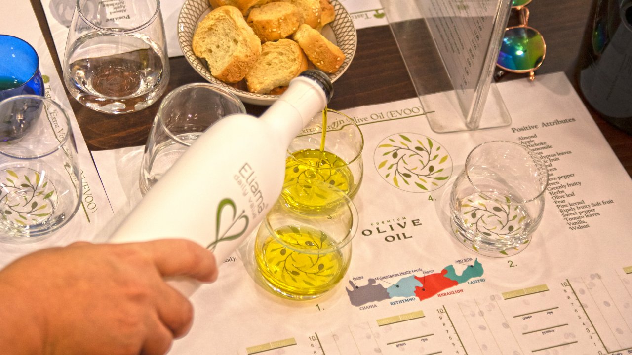 The tasting is accompanied by traditional Cretan rusks.