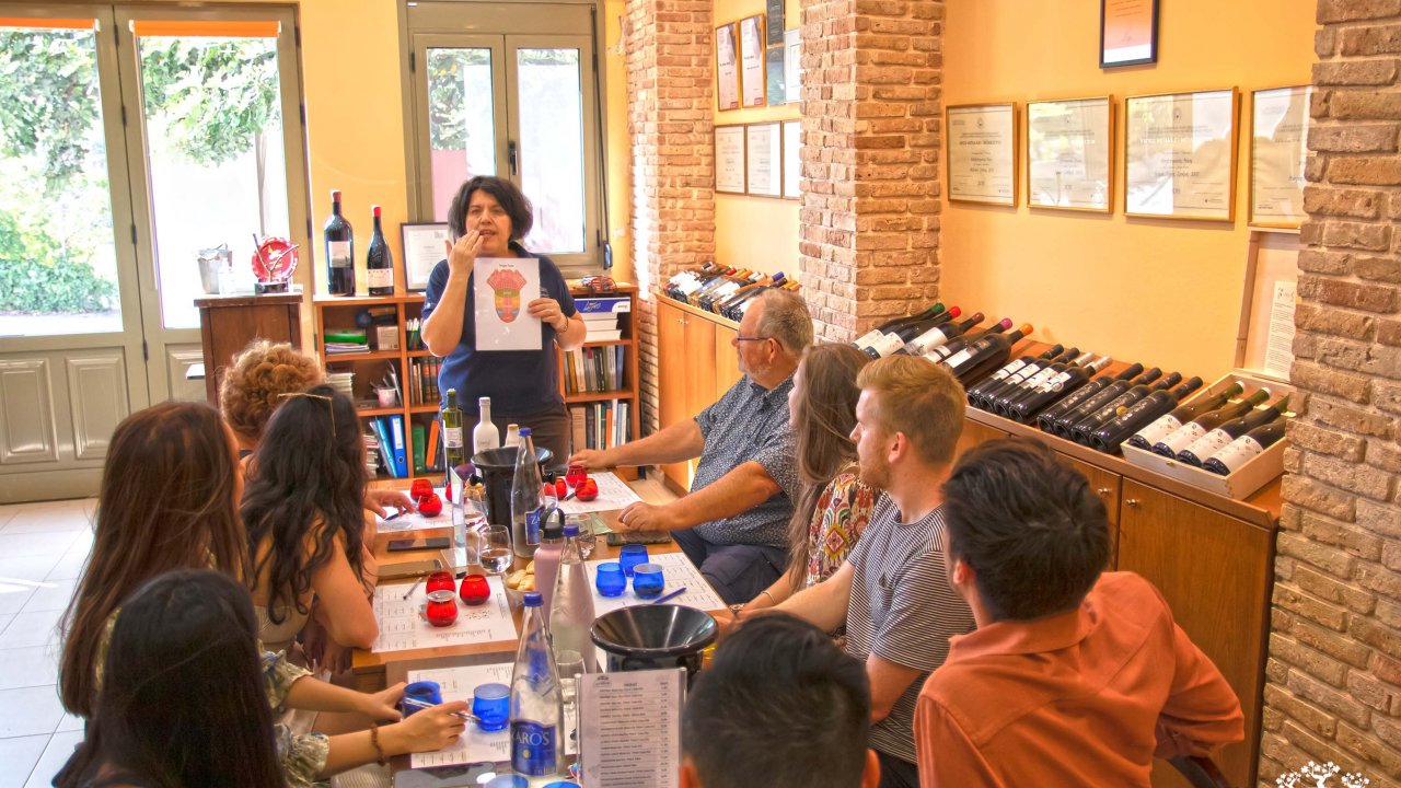 Begin with a guided tour inside the winery, where you'll learn about the wine production process and its secrets. Follow this with a tasting of six exceptional wines, including Cretan indigenous varieties like Vidiano and Liatiko, as well as white and red wines from international varieties.
